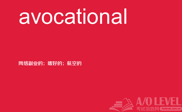 a-level课程证书被几乎所有英语授课的大学作为招收新生的入学标准。 在中国开设a-level课程旨在为中国学生提供进入国外大学的有效途径,具体目标为:培养在国内初高中成绩优秀的学生进入世界顶尖大学;培养在国内初高中成绩中等的学生进入世界一流大学;培养在国内初高中成绩一般的学生考取适合自己的大学。今天alevel考试网小编给大家详细解析a-level考试单词avocational。如果您想了解中国alevel成绩申请国外名校,alevel数学名词,英国alevel成绩只有c,alevel申请条件等关于a-level考试的相关资讯,请继续浏览并关注课窝a/o-level考试网。