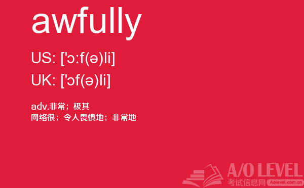 英国留学考试a-level考试考什么?a-level考试题型一定要注意积累和总结。课窝a/o-level考试网小编每天会给大家带来a-level考试的相关资讯,今天带来a-level单词awfully的解析,希望大家认真的积累a-level考试词汇。如果您想了解alevel考试大纲,英国alevel成绩只有c,爱德思alevels,中国alevel人数等关于a-level考试的相关资讯,请继续浏览并关注课窝a/o-level考试网。