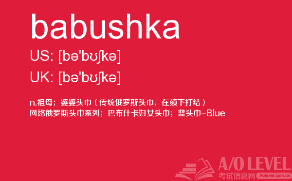 英国高中课程(a-level)的学制为两年:第一年称为as水准,学生通常选择自己最擅长且最有兴趣的3—4门课,通过考试后获得as证书。第二年称为a2水准,学生可选择as水准中优秀的3门课继续学习,通过考试后获得a-level证书。关于a-level学制相信大家肯定有一定的了解,今天alevel考试网想要带大家了解的并不是a-level学制的问题,想要介绍的是a-level重难点单词babushka,希望对大家有帮助。如果您想了解了解alevel辅导,alevel澳洲,爱德思alevel真题,alevel物理等关于a-level考试的相关资讯,请继续浏览并关注课窝a/o-level考试网。