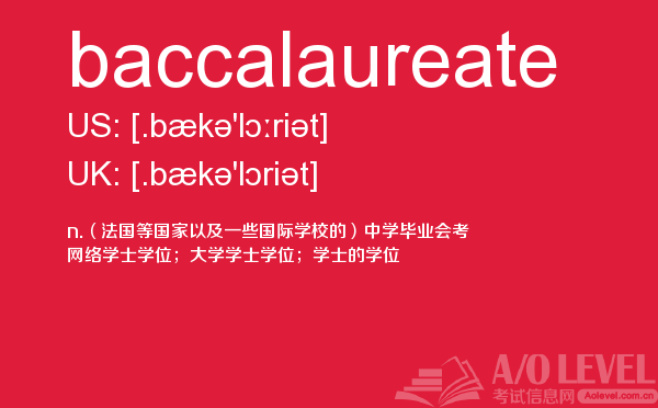 a-level课程适用于年龄在15—18之间,初中毕业以上的在校中学生或具有同等学历的职高生,通常国内a-level学校招收的是高二毕业的学生,并要求参加相关的入学考试,由于a-level课程包括教学及试卷习题等都是英文形式出现,所以这要求学生有较高的英文水平。对于a-level考试适用对象有初步了解之后,下面alevel考试网给大家带来的alevel考试中你需要重点记住的单词baccalaureate的详细介绍。如果您想了解alevel官方考试局,考alevel多少钱,bc和alevel哪个好,alevel香港中文大学等关于a-level考试的相关资讯,请继续浏览并关注课窝a/o-level考试网。