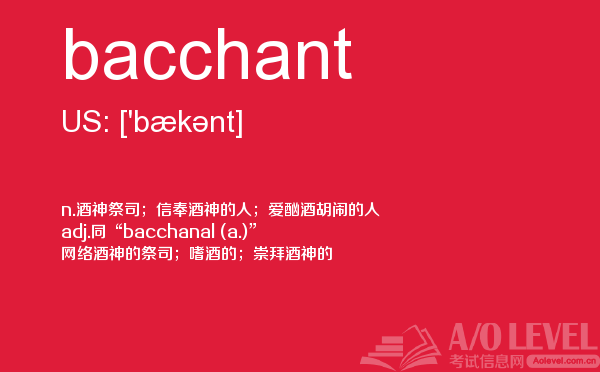 英国a-level入学考试的机会真的很少,每年就5-6月和10-11月两场考试。所以千万别因为不必要的原因,影响了a-level入学考试。为了让大家更好的在英国留学,a/o-level考试网会为大家带来a-level考试相关的资讯,一起来看看a/o-level考试网今天带来的词汇bacchant的解析。如果您想了解alevel课程选课,上海alevel中心,英国中学排名alevel,alevel课程难吗等关于a-level考试的相关资讯,请继续浏览并关注课窝a/o-level考试网。