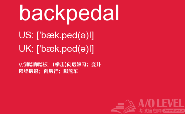 对于a-level考试,我们一再强调要加强a-level考试真题实战,多做英国a-level考试真题。放松一下,跟着a/o-level考试网来积累一下a-level考试中你会用到的单词backpedal,对你的a-level考试会有很大的帮助。如果您想了解alevel考试用品,alevel写作真题,alevel词汇书,alevel非全日制培训等关于a-level考试的相关资讯,请继续浏览并关注课窝a/o-level考试网。