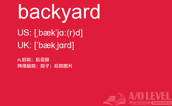 英国a-level考试报名费很好解决,那怎样才能达到a-level考试词汇量要求呢?别再纠结于a-level考试分数要求了,今天我们来一起看看a/o-level考试网今天带给你的a-level单词backyard的讲解。如果您想了解英国读alevel,alevel申请中心,申请alevel,olevel和alevel的区别等关于a-level考试的相关资讯,请继续浏览并关注课窝a/o-level考试网。