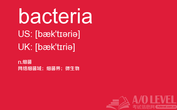 现在申请英国院校的中国孩子非常多,几乎每一个学生都在为一种叫做英国a-level的考试而努力着。a/o-level考试网老师为大家解析a-level考试重难点单词bacteria,大家认真学习,会有帮助。如果您想了解alevel考场地址,alevel中文考试真题,alevel物理常备词汇,alevel辅导等关于a-level考试的相关资讯,请继续浏览并关注课窝a/o-level考试网。