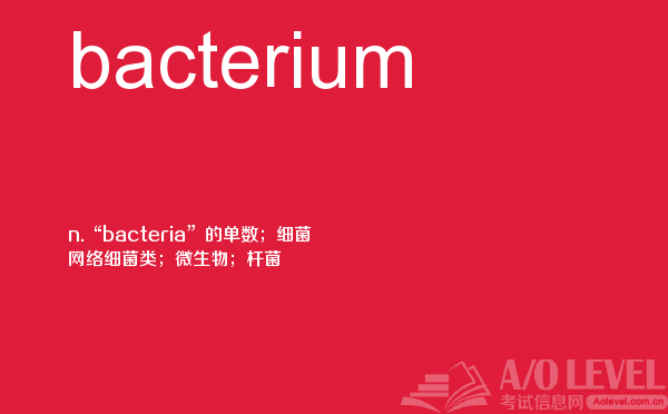 英国留学考试a-level考试考什么?a-level考试题型一定要注意积累和总结。课窝a/o-level考试网小编每天会给大家带来a-level考试的相关资讯,今天带来a-level单词bacterium的解析,希望大家认真的积累a-level考试词汇。如果您想了解alevel学校条件,alevel课程介绍,a水准考试预备班,alevel网上报名等关于a-level考试的相关资讯,请继续浏览并关注课窝a/o-level考试网。