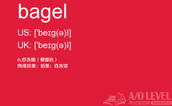 a-level的成绩分为a、b、c、d、e、u六个等级,a为最优,e为通过,u为不及格。如果学生对某门课的成绩不满意,可以选择重考,最终成绩以最好的一次为准。那么a-level考试想要取得a-level高分大家需要做到哪些呢?a/o-level考试网给大家带来的很多a-level考试经验,alevel考试技巧等等,想要考好a-level考试,不仅要知道这些,对于关于a-level考试的所有资讯都需要了解,最重点的是a-level词汇量的积累,今天a/o-level考试网就给大家带来的a-level的考试单词bagel的全面解析。如果您想了解alevel课程的适用范围,alevel国际学校,alevel考试日期,alevel经济学教材目录等关于a-level考试的相关资讯,请继续浏览并关注课窝a/o-level考试网。