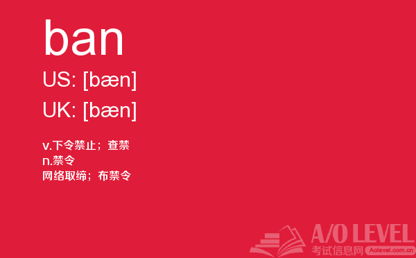 a-level的成绩分为a、b、c、d、e、u六个等级,a为最优,e为通过,u为不及格。如果学生对某门课的成绩不满意,可以选择重考,最终成绩以最好的一次为准。那么a-level考试想要取得a-level高分大家需要做到哪些呢?a/o-level考试网给大家带来的很多a-level考试经验,alevel考试技巧等等,想要考好a-level考试,不仅要知道这些,对于关于a-level考试的所有资讯都需要了解,最重点的是a-level词汇量的积累,今天a/o-level考试网就给大家带来的a-level的考试单词ban的全面解析。如果您想了解a水准考试难度,a水准简单吗,为什么要考alevel课程,英国alevel课程等关于a-level考试的相关资讯,请继续浏览并关注课窝a/o-level考试网。