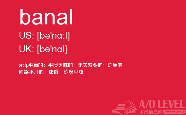 在a-level备考的过程中,想要冲刺到a-level写作的高分,相信大家都应该会知道,除了需要掌握a-level写作的一些技巧之外,优化文章中的词汇和句型也是冲刺高分的关键所在。也就是说,只有充分掌握了语法知识,才能让我们的的文章更为丰富形象。除了a-level写作,在a-level其他方面同学们也需要了解,下面课窝a/o-level考试网小编给大家带来a-level单词banal的介绍。如果您想了解alevel咨询中心,alevel进阶数学辅导,alevel物理考a难吗,alevel考试哪两个阶段等关于a-level考试的相关资讯,请继续浏览并关注课窝a/o-level考试网。