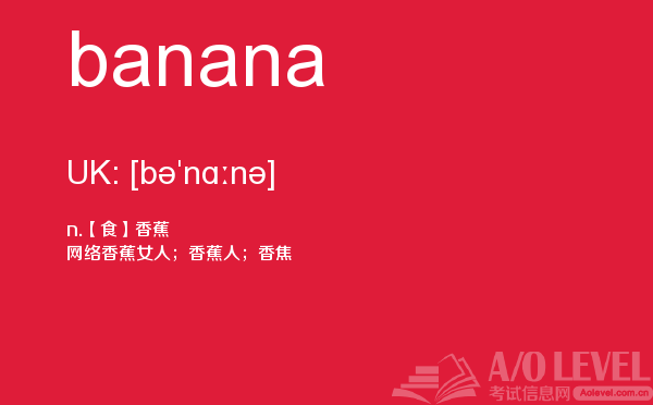 虽然英国a-level院校招生官常把“成绩不是决定录取与否的唯一因素”挂在嘴边,但不得不承认,a-level分数是学生优秀与否的有力证据,取得a-level成绩高分是肯定是优先考虑的。放松一下,先跟着a/o-level考试网来看看今天小编带来的是a-level单词banana的介绍。如果您想了解alevel数学真题下载,alevel教材在哪里买,alevel课程教案,新加坡a水准考试条件等关于a-level考试的相关资讯,请继续浏览并关注课窝a/o-level考试网。