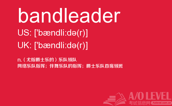 a-level(general certificate of education advanced level ),英国高中课程,是英国全民课程体系,是英国普通中等教育证书考试高级水平课程,也是英国学生的大学入学考试课程。今天alevel考试网小编给大家带来的alevel考试单词bandleader的详细介绍。希望大家能够认真的阅读。如果您想了解alevel范文,alevel经济学教材目录,alevel课程价格,alevel考场地址等关于a-level考试的相关资讯,请继续浏览并关注课窝a/o-level考试网。