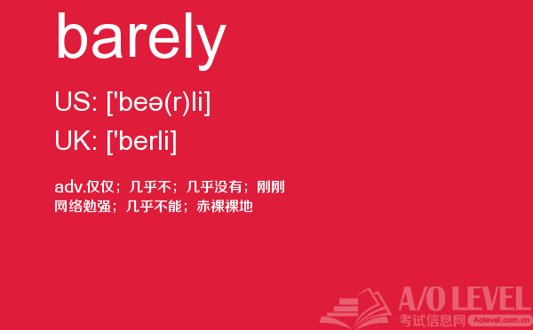 随着英国留学申请竞争的白热化,a-level成绩在学生个人简历中扮演的“入场券”角色,变得越来越重要。然而,在你参加a-level考试培训班前,你首先要对a-level考试有着一定的了解,一起跟着a/o-level考试网来看看小编今天带来a-level单词barely的详细介绍。如果您想了解alevel真题下载,alevel历史,alevel授权,alevel经济学课本等关于a-level考试的相关资讯,请继续浏览并关注课窝a/o-level考试网。
