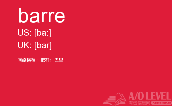 众多周知的英国a-level入学考试是进入英国院校的必经之路,所以我们自然不能小看,建议同学们能够加强a-level考试真题的练习,提前明确英国a-level考试报名的具体信息。为了提高考生们的英国a-level考试成绩,a/o-level考试网小编会每天给大家更新a-level留学资讯和alevel考试资讯,今天带来的是关于a-level考试词汇的单词全解,下面带你学习barre的用法。如果您想了解新加坡a水准报名费用,国内alevel学校,alevel澳洲留学申请,alevel考试时刻等关于a-level考试的相关资讯,请继续浏览并关注课窝a/o-level考试网。