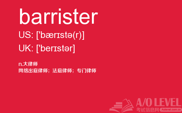 随着英国留学申请竞争的白热化,a-level成绩在学生个人简历中扮演的“入场券”角色,变得越来越重要。然而,在你参加a-level考试培训班前,你首先要对a-level考试有着一定的了解,一起跟着a/o-level考试网来看看小编今天带来a-level单词barrister的详细介绍。如果您想了解alevel化学知识点,新加坡a水准试题,alevel考试备考,a水准考试美国等关于a-level考试的相关资讯,请继续浏览并关注课窝a/o-level考试网。