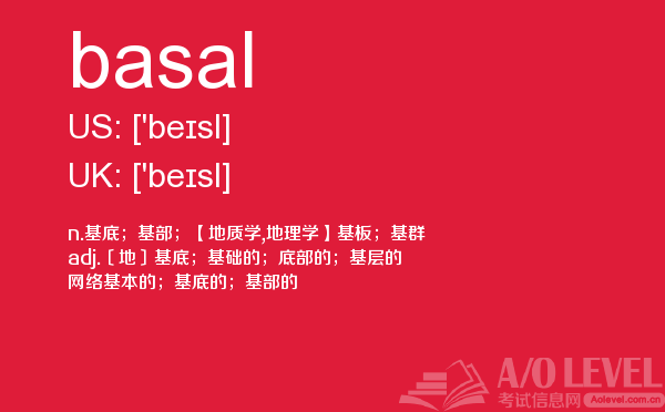 a-level课程证书被几乎所有英语授课的大学作为招收新生的入学标准。 在中国开设a-level课程旨在为中国学生提供进入国外大学的有效途径,具体目标为:培养在国内初高中成绩优秀的学生进入世界顶尖大学;培养在国内初高中成绩中等的学生进入世界一流大学;培养在国内初高中成绩一般的学生考取适合自己的大学。今天alevel考试网小编给大家详细解析a-level考试单词basal。如果您想了解中国alevel成绩申请国外名校,alevel数学名词,英国alevel成绩只有c,alevel申请条件等关于a-level考试的相关资讯,请继续浏览并关注课窝a/o-level考试网。