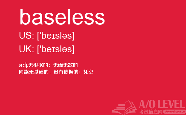 英国以其高质量的教学闻名于世,如果你还在思考a-level考试值不值得考?近几年的英国留学a-level考试的热潮足以证明一切!课窝a/o-level考试网会给大家带来a-level考试真题,a-level考试如何复习?等所有有关的a-level考试资讯。课窝a/o-level考试网今天带来a-level考试中很重要的单词baseless的详细解析,会对你有帮助。如果您想了解alevel证书,爱德思alevel真题,alevel经济2017试卷,新加坡alevel等关于a-level考试的相关资讯,请继续浏览并关注课窝a/o-level考试网。