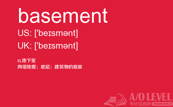 众多周知的英国a-level入学考试是进入英国院校的必经之路,所以我们自然不能小看,建议同学们能够加强a-level考试真题的练习,提前明确英国a-level考试报名的具体信息。为了提高考生们的英国a-level考试成绩,a/o-level考试网小编会每天给大家更新a-level留学资讯和alevel考试资讯,今天带来的是关于a-level考试词汇的单词全解,下面带你学习basement的用法。如果您想了解中国alevel人数,alevel考试用品,alevel经济,alevel考试年龄等关于a-level考试的相关资讯,请继续浏览并关注课窝a/o-level考试网。