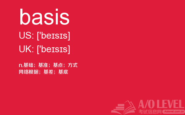 英国a-level学校,从教学质量上来看私立学校更占优势,大部分中国留学生也选择私立学校来读,不过一般都是提前一年来申请学校。中国目前也有20几所a-level学校,每年也同样有走进剑桥牛津等世界顶级大学的学生。所以在国外和在国内都可以选择a-level学校来学习。在前面关于a-level选校的问题已经详细介绍过,那么今天a/o-level考试网小编主要想介绍的是a-level重难点词汇basis。希望对大家有帮助。如果您想了解alevel官方报名,alevel美术课程,alevel数学难度,alevel高数等关于a-level考试的相关资讯,请继续浏览并关注课窝a/o-level考试网。