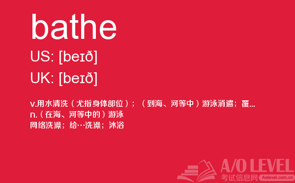 现在申请英国院校的中国孩子非常多,几乎每一个学生都在为一种叫做英国a-level的考试而努力着。a/o-level考试网老师为大家解析a-level考试重难点单词bathe,大家认真学习,会有帮助。如果您想了解alevel价格,alevel数学教科书,国内alevel学校,alevel报名截止日期等关于a-level考试的相关资讯,请继续浏览并关注课窝a/o-level考试网。