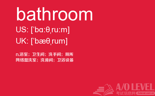 为了有a-level考试高分,很多童靴都参加英国高中课程a-level考试前都会做很多a-level考试真题。a-level考试备考要有一定的方法,课窝a/o-level考试网每天都会给大家带来a-level考试资讯,a-level考试备考相关的内容,今天课窝a/o-level考试网小编给大家带来关于a-level单词bathroom的详细介绍。如果您想了解alevel成绩查询,alevel课程可以申请留学新加坡吗,alevel考试大纲,alevel课程价格等关于a-level考试的相关资讯,请继续浏览并关注课窝a/o-level考试网。