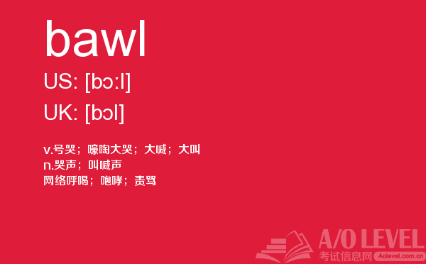 英国a-level考试报名费很好解决,那怎样才能达到a-level考试词汇量要求呢?别再纠结于a-level考试分数要求了,今天我们来一起看看a/o-level考试网今天带给你的a-level单词bawl的讲解。如果您想了解a水准考试难度,高考完新加坡a水准,奥克兰大学alevel,alevel考试科目体育等关于a-level考试的相关资讯,请继续浏览并关注课窝a/o-level考试网。
