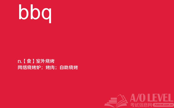 目前,a/olevel逐渐为人所熟知,很多学生都会主动了解alevel考试流程。同时也会抱怨a-level英语题比较难,任务重。那现在我们就放松一下,跟着a/o-level考试网小编来看看a-level考试中要积累的单词bbq,认真的学习积累。如果您想了解alevel考试如何退考,alevel自学考几门,英国高考alevel,墨尔本大学alevel申请条件等关于a-level考试的相关资讯,请继续浏览并关注课窝a/o-level考试网。