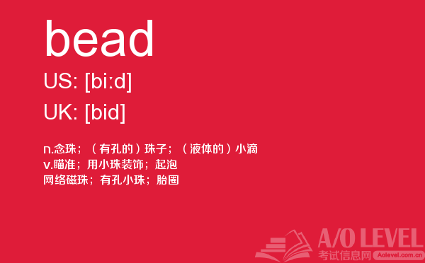 你知道考上a-level考试如何报名吗?最近很多人询问英国a-level考试有多难?到底要不要参加a-level考试培训?抛弃这些,a/o-level考试网老师告诉你,a-level单词最重要,今天带你学习bead怎么用,希望你认真的学习。如果您想了解alevel课程可以申请留学新加坡吗,alevel中文书目,alevel词汇量,alevel参考书等关于a-level考试的相关资讯,请继续浏览并关注课窝a/o-level考试网。