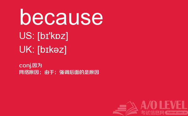 就读于国内学校的学生, 在申请英国学校时需要提交英国a-level考试成绩。很多考生因此英国a-level考试搞得头疼,放松一下,跟着a/o-level考试网来看看英国留学资讯吧!今天课窝a/o-level考试网小编给大家带来a-level考试重点词汇because的全解,对你肯定有帮助。如果您想了解alevel培训学费,alevel考试题型,考alevel多少钱,中国有a水准培训班吗等关于a-level考试的相关资讯,请继续浏览并关注课窝a/o-level考试网。