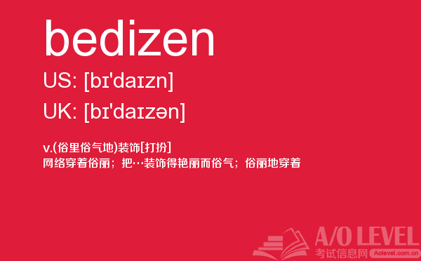 随着英国留学申请竞争的白热化,a-level成绩在学生个人简历中扮演的“入场券”角色,变得越来越重要。然而,在你参加a-level考试培训班前,你首先要对a-level考试有着一定的了解,一起跟着a/o-level考试网来看看小编今天带来a-level单词bedizen的详细介绍。如果您想了解alevel化学知识点,新加坡a水准试题,alevel考试备考,a水准考试美国等关于a-level考试的相关资讯,请继续浏览并关注课窝a/o-level考试网。