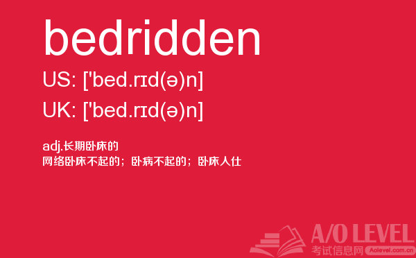 为了有a-level考试高分,很多童靴都参加英国高中课程a-level考试前都会做很多a-level考试真题。a-level考试备考要有一定的方法,课窝a/o-level考试网每天都会给大家带来a-level考试资讯,a-level考试备考相关的内容,今天课窝a/o-level考试网小编给大家带来关于a-level单词bedridden的详细介绍。如果您想了解alevel进阶数学分数段,a水准简单吗,新加坡a水准考试难吗,alevel考点等关于a-level考试的相关资讯,请继续浏览并关注课窝a/o-level考试网。
