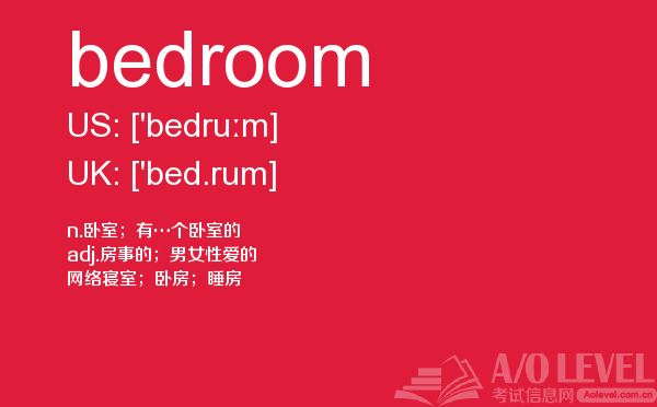 英国高中课程(a-level)的学制为两年:第一年称为as水准,学生通常选择自己最擅长且最有兴趣的3—4门课,通过考试后获得as证书。第二年称为a2水准,学生可选择as水准中优秀的3门课继续学习,通过考试后获得a-level证书。关于a-level学制相信大家肯定有一定的了解,今天alevel考试网想要带大家了解的并不是a-level学制的问题,想要介绍的是a-level重难点单词bedroom,希望对大家有帮助。如果您想了解新alevel,爱德斯alevel,alevel,英国alevel毕业证等关于a-level考试的相关资讯,请继续浏览并关注课窝a/o-level考试网。