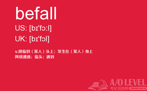 英国a-level考试是英国留学生去英国留学需要参加的考试,很多考生担心a-level考试分数要求高,英国a-level考试难度大,别担心,只要认真的学习a-level考试内容,小编相信大家一定能够考得a-level高分。今天a/o-level考试网给大家带来单词befall的全面解析。如果您想了解alevel经济教材,alevel中文书目,alevel中文口语,a水准考试预备班怎么样等关于a-level考试的相关资讯,请继续浏览并关注课窝a/o-level考试网。