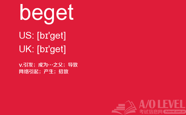 英国a-level入学考试的机会真的很少,每年就5-6月和10-11月两场考试。所以千万别因为不必要的原因,影响了a-level入学考试。为了让大家更好的在英国留学,a/o-level考试网会为大家带来a-level考试相关的资讯,一起来看看a/o-level考试网今天带来的词汇beget的解析。如果您想了解alevel物理真题,高三毕业能读alevel吗,alevel剑桥,alevel报名流程等关于a-level考试的相关资讯,请继续浏览并关注课窝a/o-level考试网。