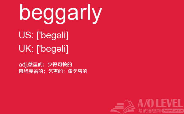 a-level词汇量受到的关注越来越高,很多家长担心a-level考试培训费用,a-level考试录取竞争会不会越来越激烈?这些问题在课窝a/o-level考试网小编都会给大家带来详细介绍,今天a/o-level考试网小编给大家带来的是在a-level考试中的重点词汇beggarly的详细介绍。如果您想了解a水准考试范围,alevel预测,新加坡a水准考试,英国高中alevel排名等关于a-level考试的相关资讯,请继续浏览并关注课窝a/o-level考试网。