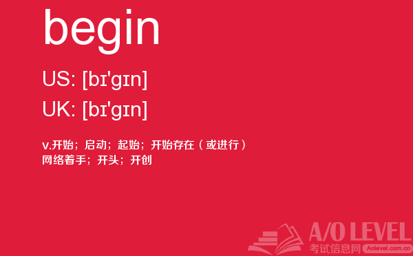 在a-level备考的过程中,想要冲刺到a-level写作的高分,相信大家都应该会知道,除了需要掌握a-level写作的一些技巧之外,优化文章中的词汇和句型也是冲刺高分的关键所在。也就是说,只有充分掌握了语法知识,才能让我们的的文章更为丰富形象。除了a-level写作,在a-level其他方面同学们也需要了解,下面课窝a/o-level考试网小编给大家带来a-level单词begin的介绍。如果您想了解alevel考场,alevel考试价格,alevel经济培训班,怎么去英国读alevel课程等关于a-level考试的相关资讯,请继续浏览并关注课窝a/o-level考试网。