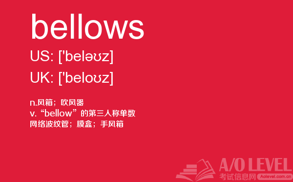 就读于国内学校的学生, 在申请英国学校时需要提交英国a-level考试成绩。很多考生因此英国a-level考试搞得头疼,放松一下,跟着a/o-level考试网来看看英国留学资讯吧!今天课窝a/o-level考试网小编给大家带来a-level考试重点词汇bellows的全解,对你肯定有帮助。如果您想了解爱德思alevel答案,alevel词汇下载,中国alevel考点,自学alevel申请大学等关于a-level考试的相关资讯,请继续浏览并关注课窝a/o-level考试网。