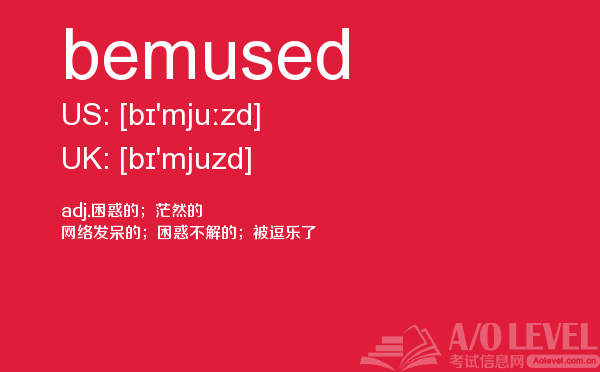 a- level课程一般在中国开设数学、进阶数学(或称高等数学)、物理、计算机学、会计学、商业学、经济学等课程供学生选择。那么关于alevel考生应该选哪些alevel课程呢?以后会给大家详细介绍,今天a/o-level考试网主要给大家全面介绍a-level词汇中的bemused单词。如果您想了解a水准物理专业术语,alevel中文,alevel词汇表,alevel经济学真题等关于a-level考试的相关资讯,请继续浏览并关注课窝a/o-level考试网。