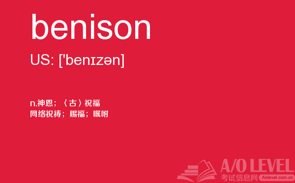 就读于国内学校的学生, 在申请英国学校时需要提交英国a-level考试成绩。很多考生因此英国a-level考试搞得头疼,放松一下,跟着a/o-level考试网来看看英国留学资讯吧!今天课窝a/o-level考试网小编给大家带来a-level考试重点词汇benison的全解,对你肯定有帮助。如果您想了解alevel考试局比较,alevel课程物理,alevel真题搜索,alevel成绩网上查询等关于a-level考试的相关资讯,请继续浏览并关注课窝a/o-level考试网。