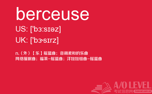 就读于国内学校的学生, 在申请英国学校时需要提交英国a-level考试成绩。很多考生因此英国a-level考试搞得头疼,放松一下,跟着a/o-level考试网来看看英国留学资讯吧!今天课窝a/o-level考试网小编给大家带来a-level考试重点词汇berceuse的全解,对你肯定有帮助。如果您想了解alevel网课,alevel官网,alevel培训费用,alevel化学知识点整理等关于a-level考试的相关资讯,请继续浏览并关注课窝a/o-level考试网。