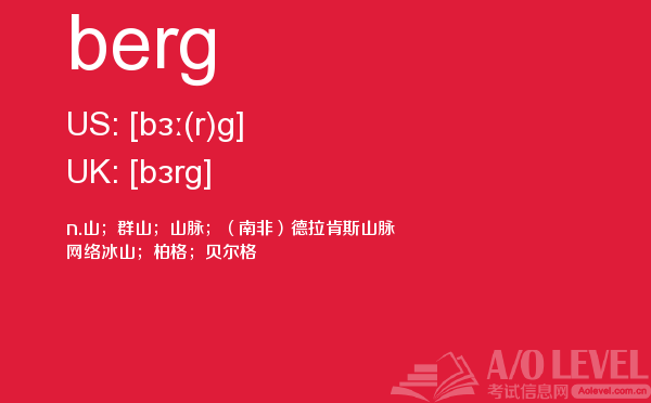 现在申请英国院校的中国孩子非常多,几乎每一个学生都在为一种叫做英国a-level的考试而努力着。a/o-level考试网老师为大家解析a-level考试重难点单词berg,大家认真学习,会有帮助。如果您想了解alevel学校什么时候招生,alevel数学词汇,alevel申请成绩,a水准报名时间地点费用等关于a-level考试的相关资讯,请继续浏览并关注课窝a/o-level考试网。