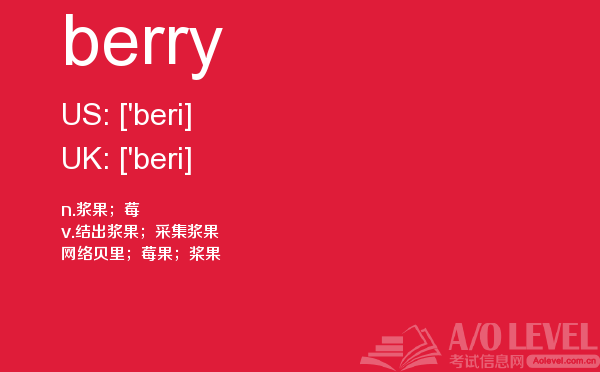 随著学生的素质提升,各大a-level课程培训班的师资和英国a-level题库也不断的完善,近年来学生考出来a-level分数也不断上涨。但是去英国留学,对英国留学资讯和英国的a-level考试资讯都是需要了解的,下面一起跟着a/o-level考试网来看看a-level词汇之berry的详细介绍。如果您想了解为什么要考alevel课程,alevel考试流程,新加坡alevel学校,alevel官方报名网等关于a-level考试的相关资讯,请继续浏览并关注课窝a/o-level考试网。