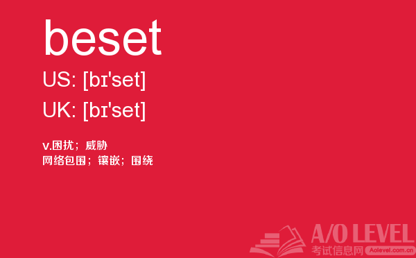 英国a-level学校,从教学质量上来看私立学校更占优势,大部分中国留学生也选择私立学校来读,不过一般都是提前一年来申请学校。中国目前也有20几所a-level学校,每年也同样有走进剑桥牛津等世界顶级大学的学生。所以在国外和在国内都可以选择a-level学校来学习。在前面关于a-level选校的问题已经详细介绍过,那么今天a/o-level考试网小编主要想介绍的是a-level重难点词汇beset。希望对大家有帮助。如果您想了解上海alevel培训机构,alevel数学公式表,alevel成绩查询时间,alevel申请新加坡等关于a-level考试的相关资讯,请继续浏览并关注课窝a/o-level考试网。