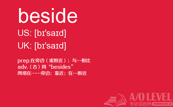 a-level 的考试将由所属的考试委员会分别于每年5-6月和10-11月在全球统一组织,成绩分别在8月和次年2月公布。关于a-level考试时间的具体内容,alevel考试网前面详细介绍过,大家可以查找alevel考试网前面的a-level考试资讯,alevel考试网每天会更新大量的alevel考试资讯,本篇要给大家介绍a-level单词beside的全面介绍。如果您想了解alevel香港中文大学,上海alevel培训班,中国alevel考点,alevel中文书目等关于a-level考试的相关资讯,请继续浏览并关注课窝a/o-level考试网。