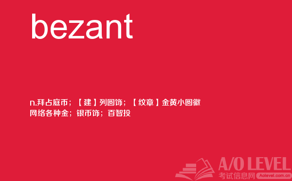 英国高中课程(a-level)的学制为两年:第一年称为as水准,学生通常选择自己最擅长且最有兴趣的3—4门课,通过考试后获得as证书。第二年称为a2水准,学生可选择as水准中优秀的3门课继续学习,通过考试后获得a-level证书。关于a-level学制相信大家肯定有一定的了解,今天alevel考试网想要带大家了解的并不是a-level学制的问题,想要介绍的是a-level重难点单词bezant,希望对大家有帮助。如果您想了解alevel培训中心,英国alevel排名,alevel历年真题,alevel官方网站等关于a-level考试的相关资讯,请继续浏览并关注课窝a/o-level考试网。