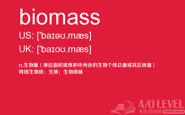 a-level的成绩分为a、b、c、d、e、u六个等级,a为最优,e为通过,u为不及格。如果学生对某门课的成绩不满意,可以选择重考,最终成绩以最好的一次为准。那么a-level考试想要取得a-level高分大家需要做到哪些呢?a/o-level考试网给大家带来的很多a-level考试经验,alevel考试技巧等等,想要考好a-level考试,不仅要知道这些,对于关于a-level考试的所有资讯都需要了解,最重点的是a-level词汇量的积累,今天a/o-level考试网就给大家带来的a-level的考试单词biomass的全面解析。如果您想了解alevel社会学,alevel考试满分,alevel真题下载,新加坡a水准预科等关于a-level考试的相关资讯,请继续浏览并关注课窝a/o-level考试网。