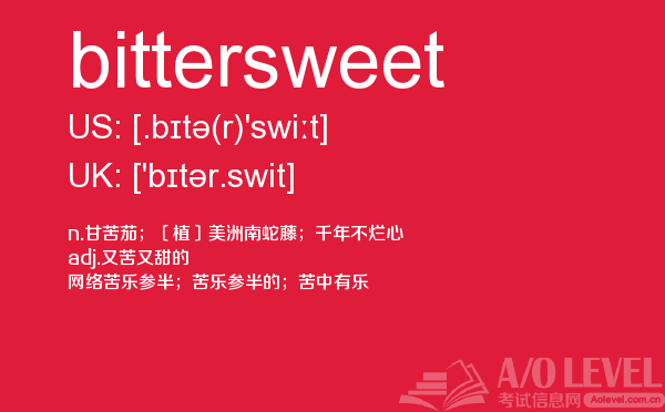 今天课窝a/o-level考试网小编给大家带来alevel考试至关重要的内容a-level单词bittersweet的详细介绍。希望大家能够认真的阅读,在备考a-level中会用到,关于a-level考试时间,alevel考试费用等相关问题,可以关注课窝a/o-level考试网。如果您想了解alevel双语教材,英国alevel课程是什么,alevel课程物理总结,alevel考试成绩查询等关于a-level考试的相关资讯,请继续浏览并关注课窝a/o-level考试网。