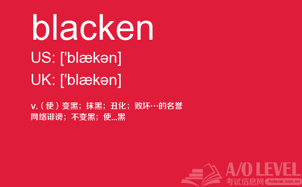 英国、加拿大、爱尔兰、澳大利亚、新西兰、新加坡等英语国家没有统一的大学入学标准,虽然它们都认可a-level证书,但是各所大学、各个专业对学生学过哪几门a-level课程以及成绩都有不同的要求。所以怎样选择课程并没有一个唯一的答案。对于如何选课的问题要根据具体情况而定。这些在你的a-level考试中都不是重要的,重要的是a-level成绩,a-level成绩取决于a-level词汇量,那么今天小编给大家带来a-level考试重点词汇blacken的全面解析。如果您想了解alevel是什么,alevel面试,alevel去哪考试在中国,alevel成绩等关于a-level考试的相关资讯,请继续浏览并关注课窝a/o-level考试网。