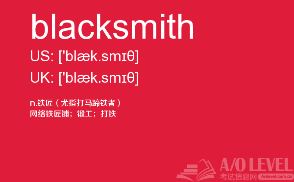 随着英国留学申请竞争的白热化,a-level成绩在学生个人简历中扮演的“入场券”角色,变得越来越重要。然而,在你参加a-level考试培训班前,你首先要对a-level考试有着一定的了解,一起跟着a/o-level考试网来看看小编今天带来a-level单词blacksmith的详细介绍。如果您想了解alevel考试机经,alevel真题试卷,alevel都有什么课程,alevel课程多久等关于a-level考试的相关资讯,请继续浏览并关注课窝a/o-level考试网。