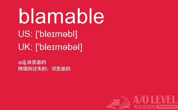 英国留学考试a-level考试考什么?a-level考试题型一定要注意积累和总结。课窝a/o-level考试网小编每天会给大家带来a-level考试的相关资讯,今天带来a-level单词blamable的解析,希望大家认真的积累a-level考试词汇。如果您想了解alevel课程多久,中国alevel考试,南京alevel培训,英国alevel排名等关于a-level考试的相关资讯,请继续浏览并关注课窝a/o-level考试网。
