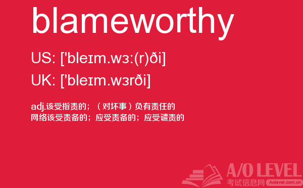 a-level考试报名须知是必须要懂得,这样在面对英国a-level入学考试的时候自己也知道应该怎么面对。为了提高考生们的a-level模拟考卷成绩,a/o-level考试网会经常给大家带来a-level考试资讯,下面就是今天课窝a/o-level考试网小编给大家讲解关于a-level考试词汇blameworthy怎么用。如果您想了解墨尔本大学alevel要求,alevel进阶数学内容,alevel自学考几门,暑期alevel等关于a-level考试的相关资讯,请继续浏览并关注课窝a/o-level考试网。