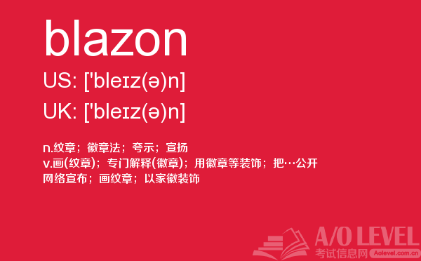 英国留学对于留学成绩的比拼越来越激烈,申请英国院校留学的一大指标a-level考试分数要求也水涨船高.虽然成绩只是申请的一部分,但不得不说,好看的英国a-level成绩是学生是否优秀的证据。放松一下跟着a/o-level考试网来学习一下a-level考试词汇blazon的应用。如果您想了解alevel考试登记,alevel经济教材是哪个,alevel机构,alevel物理难吗等关于a-level考试的相关资讯,请继续浏览并关注课窝a/o-level考试网。